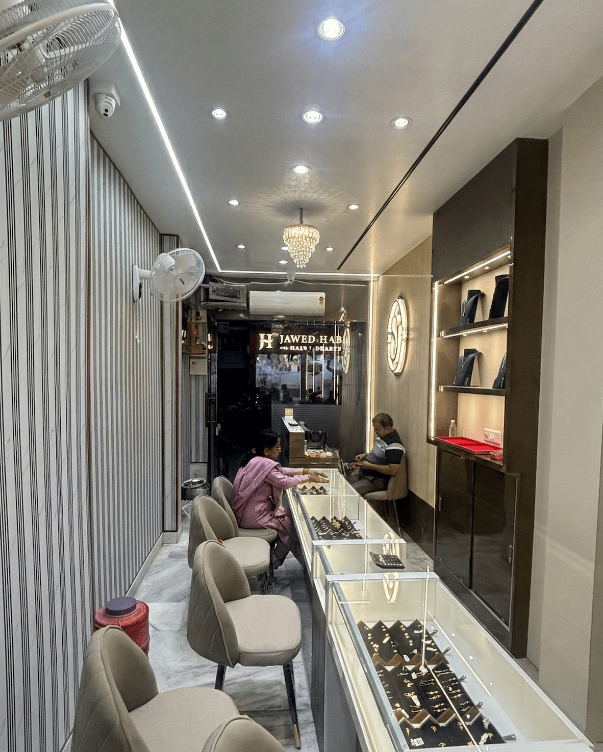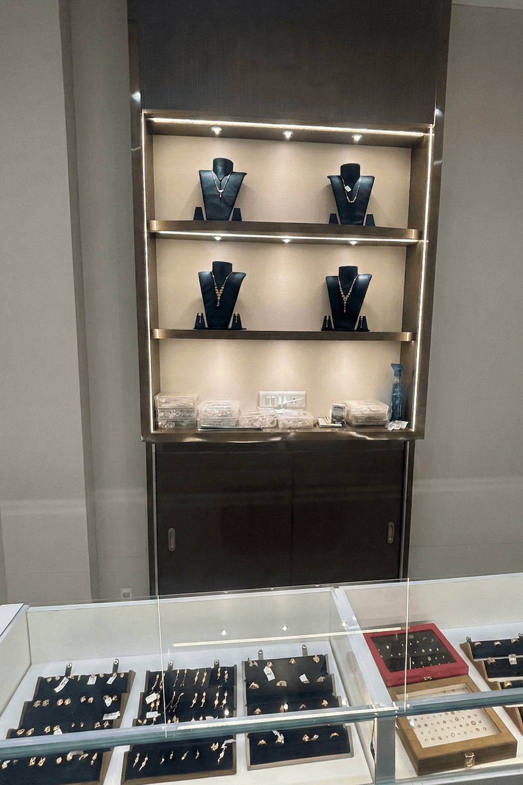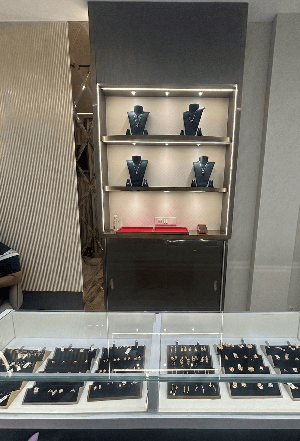 Another showcase exhibiting exquisite 18 karat Gold Jewellery deisgns.